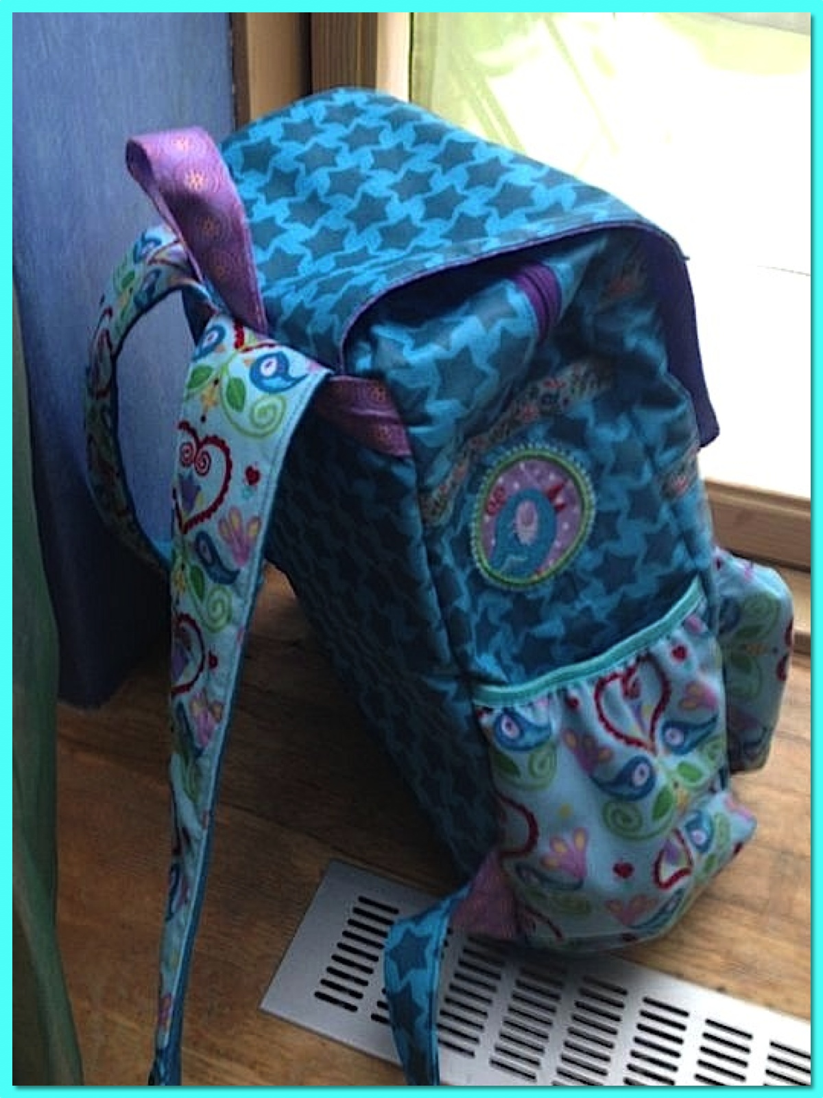 Schon Ende Januar habe ich Euch hier die Love Chirp Stickereien gezeigt, die ich für meine Freundin Alex gemacht habe. Nur den fertigen Rucksack gab es noch nicht zu sehen, habe ich die Bilder des vollendeten Werkes doch auch noch im Januar erhalten (man achte auf den Schnee im Hintergrund).