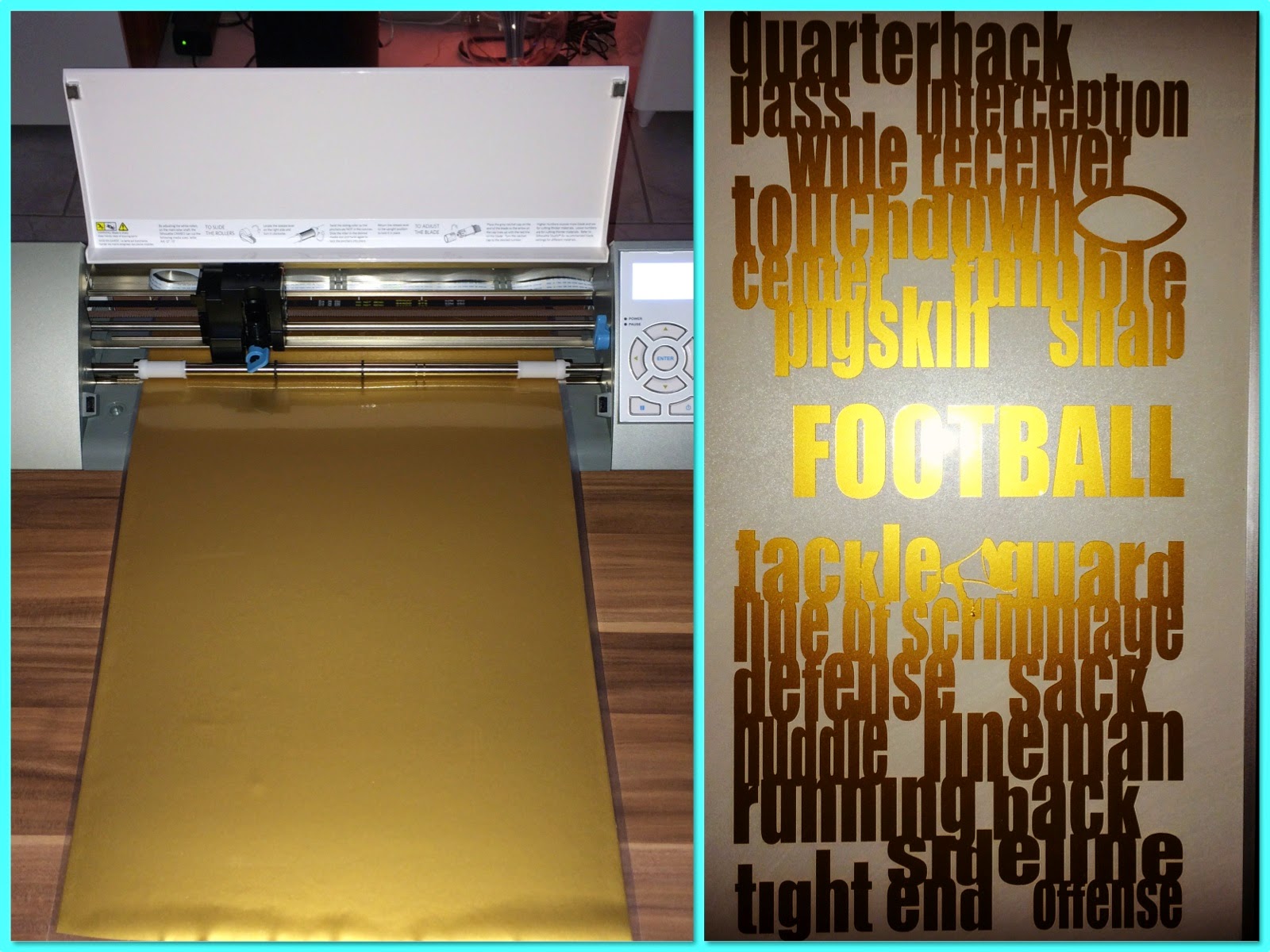 Beim Zuschneiden, hatte ich zwar die große Matte ausgewählt, aber vergessen den Schnittbereich auch zu vergrößern. Also wurden erst nur ca. 30x30cm geschnitten und das Wort Football wurde nur zu ca. 3/4 geschnitten. Arrrgh, erster Schock. Zum Glück konnte ich einfach noch den unteren Teil schneiden, nachdem ich den Schnittbereich angepasst hatte, also das Wort Football wurde als einziges doppelt geschnitten.