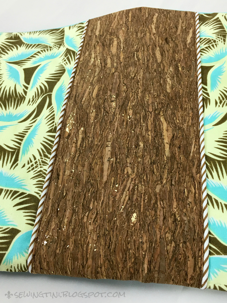 Ganz klar war mir, dass ich unbedingt Kork für den „Buchrücken“ verwenden will. Dazu kamen Amy Butler Schätze aus der Serie Belle und innen noch einfarbige Webware, damit es nicht zu wild wird.