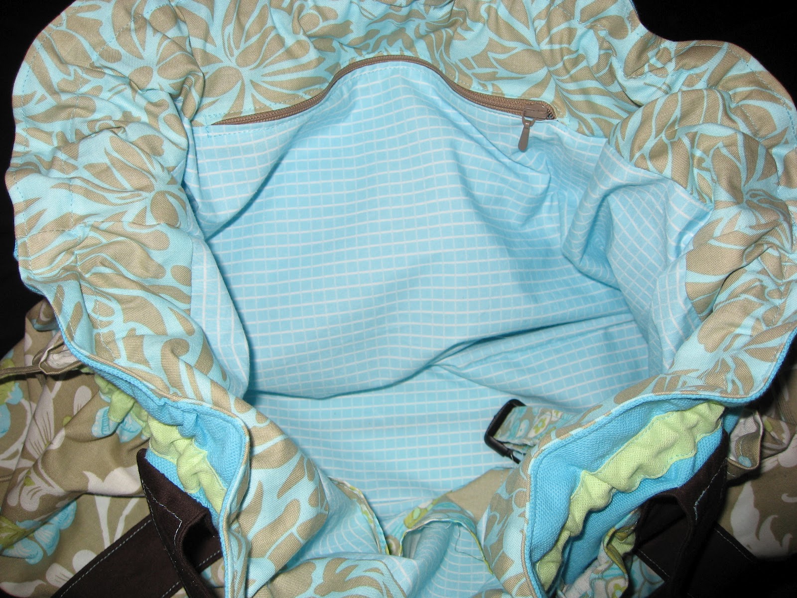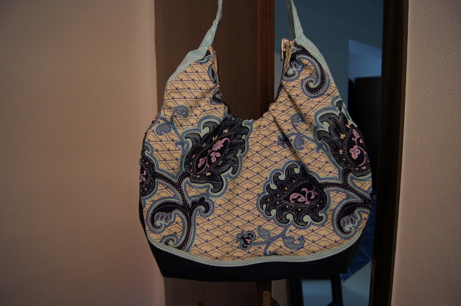Es war bis dahin das aufwendigste Projekt, was ich in Angriff genommen habe. Aber Dank der super tollen Anleitung hat alles bestens geklappt. Das Design meiner „Julie“ ist noch sehr nahe am Beispielmodell, was zum einen daran liegt, dass ich die Amy Butler Stoffe eh zu Hause hatte und ich mich sehr schwer damit tat, Stoffe zu kombinieren. Mir fehlt hier manchmal doch sehr das Vorstellungsvermögen und am Anfang traute ich mich auch noch nicht, einfach mal zu machen. Ich liebe meine Julie und es blieb nicht das einzige Taschenmodell aus dem Hause „Machwerk“.