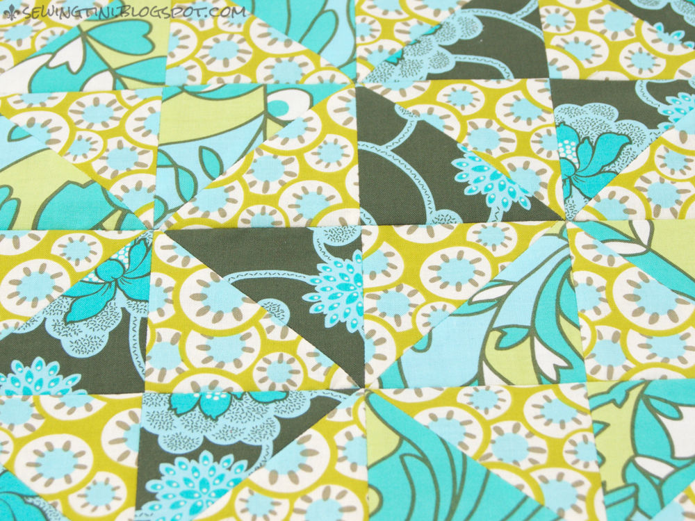 So und obwohl alles so schön zugeschnitten war, beim Nähen ist dann doch alles nicht ganz so akkurat geworden. Aber mir haben die erhöhten Stellen beim zusammennähen der HSTs und auch der einzelnen Reihen doch ganz schön zu schaffen gemacht und ich hatte dadurch immer wieder leichte Verschiebungen, die ich schon beim Nähen bemerkt hatte.