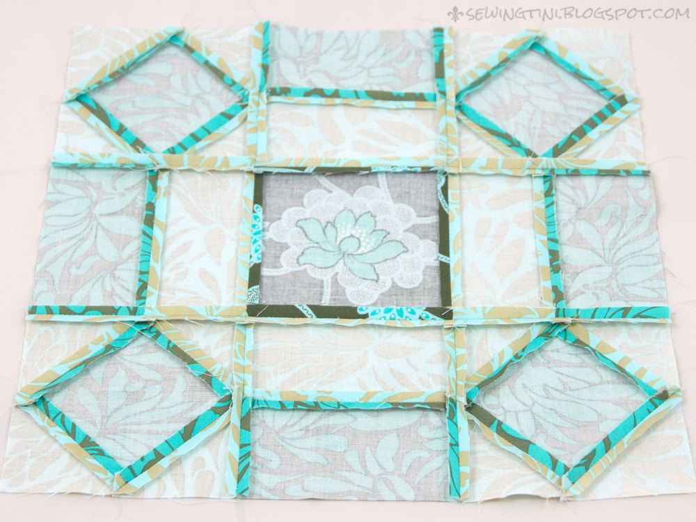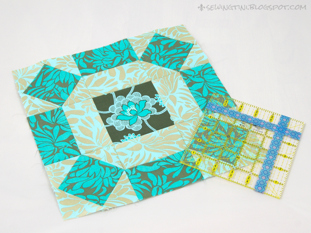 Ziemlich wertvoll fand ich Gesines Tipp, die square-in-a-square blocks beim zusammennähen der einzelnen Teile immer oben zu haben. Außerdem habe ich ganz brav viel gebügelt und habe mit Inch Füßchen und Geradstichplatte genäht.