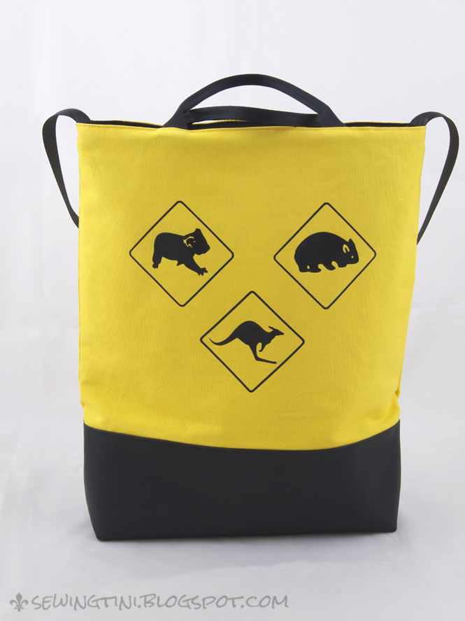 Mich hat die Datei quasi direkt angesprungen und ich wollte gerne was in Richtung Känguru-Strassenschild-Design machen :). Also stand ziemlich schnell fest, ich brauche gelben Uni, plotte noch was passendes dazu und weil ich den abgesetzten Boden so toll finde, gibt es diesen aus schwarzen Kunstleder. Ansonsten ist es die Variante mit angeschnittenen Seitenteilen.