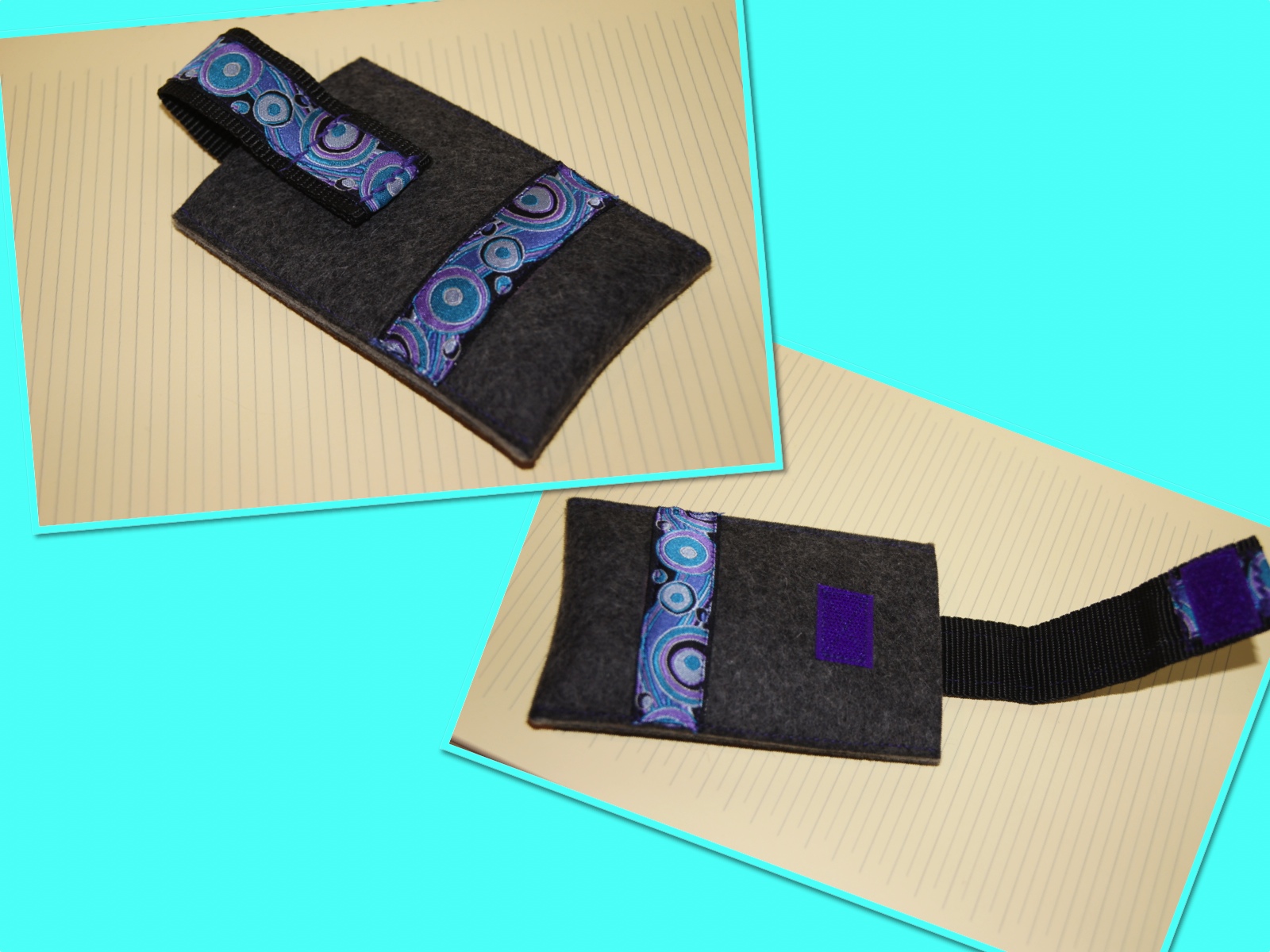 Dafür hat mein Handy etwas Neues zum Anziehen bekommen. Meine vorherige Tasche war aus Bastelfilz. War ja das erste Mal, dass ich mit Filz gearbeitet habe, es war ein Reststück aus ‚m Kaufhaus und ich habe ehrlich gesagt auch gar nicht darauf geachtet (und es auch nicht besser gewusst). Da mir die Tasche an sich aber sehr gut gefallen hat, war schon klar, dass da nochmal eine aus gutem Wollfilz her muss. Und dann neulich im Stoffladen habe ich kurz vor dem Bezahlen gesehen, dass man dort jetzt auch Filzplatten kaufen kann. Der graue hatte zwei Seiten – eine hell eine dunkel. So schön :).