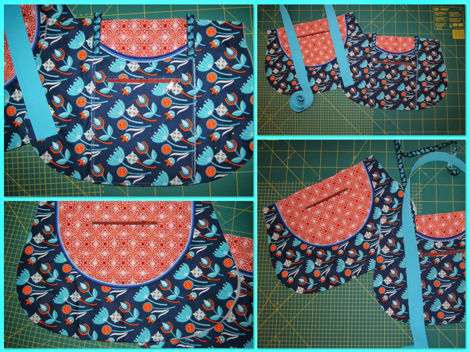 Oh wie schön. Eine richtige Tasche und nicht nur Stoffstücke. Das Gurtband ist toll – aber bei den gemusterten Stoffen und tollen Farben wirkt es doch sehr langweilig. Ich würde ja ein bisschen Schickschnack drauf ganz cool finden glaube ich.