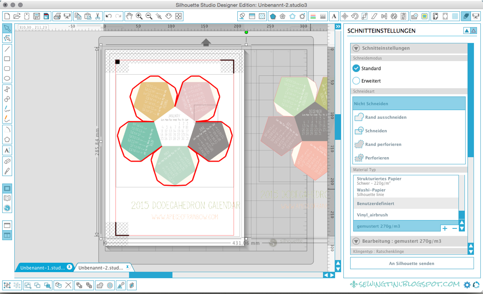 Ich bin über Pinterest auf folgenden link für einen Würfelkalender gestoßen. Der Dodecaeder wird sowohl als pdf zur Verfügung gestellt, für alle, die keinen Plotter besitzen, als auch als Silhouette Studio file.