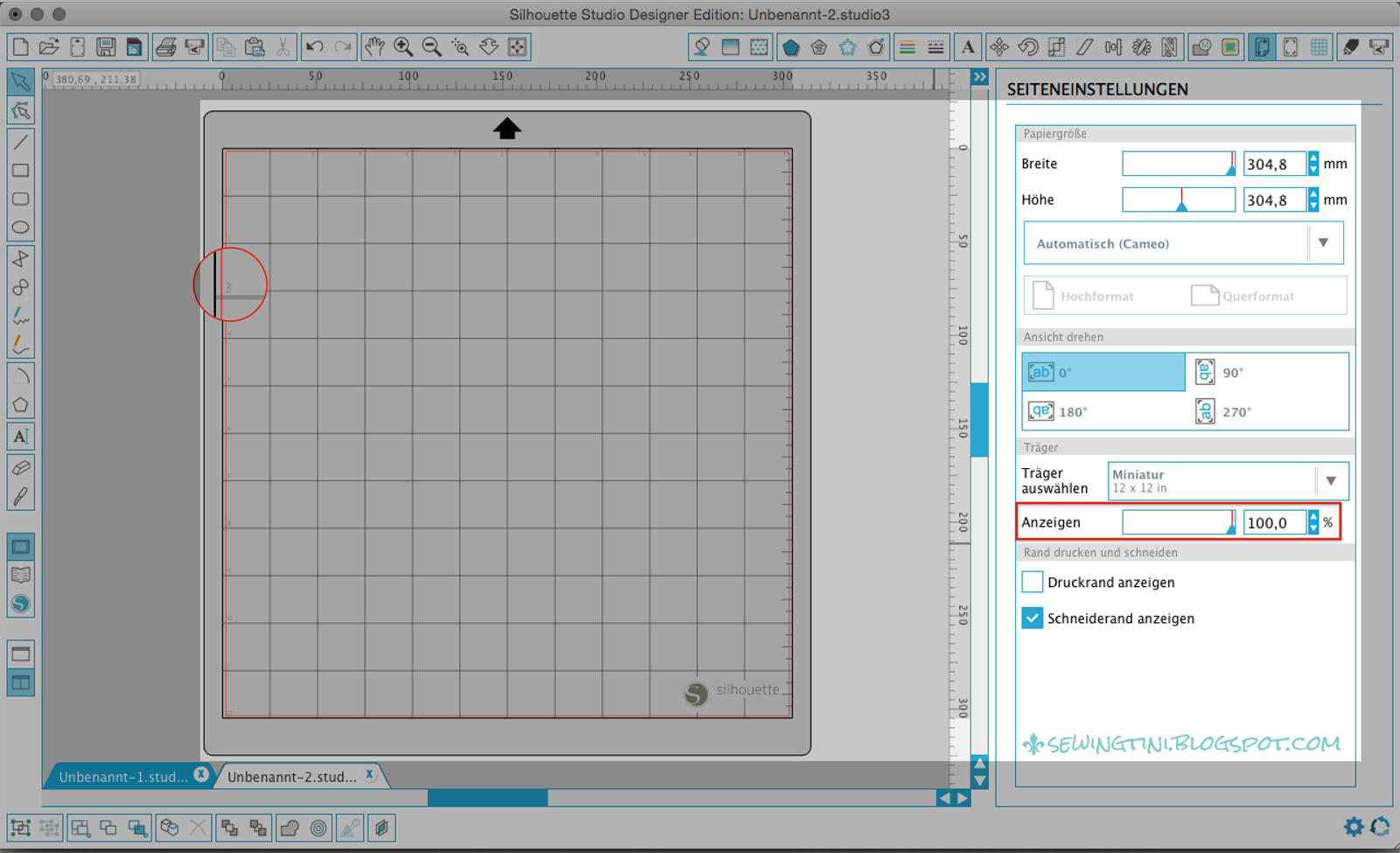 Wenn ich nun mein Motiv lade kann ich gut vergleichen wie groß das Motiv ist und ob mein Papier oder meine Folie auf der Matte diesen Bereich auch komplett abdeckt